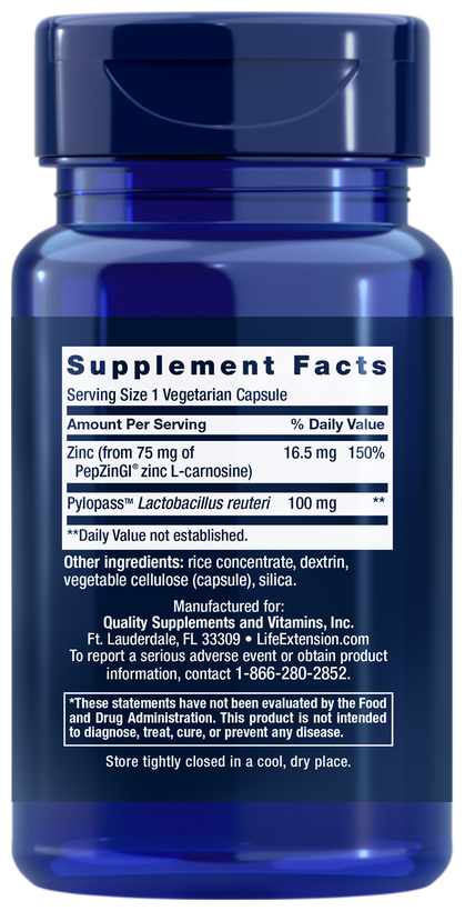 В вашем желудке содержится соляная кислота, которая помогает вам расщеплять продукты, которые вы едите. Эта кислота повредила бы нежную слизистую оболочку стенки желудка, если бы не защитное покрытие из слизи. Gastro-Ease содержит уникальную форму цинка, а также Pylopass, уникальную, термообработанную, стабилизированную форму Lactobacillus reuteri, которая поддерживает защитный слой желудка.